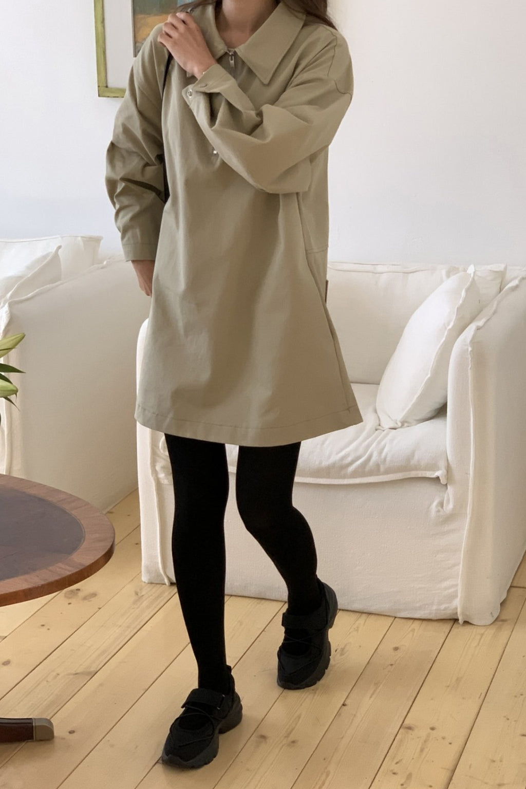 The Modern Half-Zip Mini Dress is a minimal yet refined piece crafted from soft, structured cotton fabric. Designed with a relaxed A-line silhouette, it drapes effortlessly for a modern, casual look. The collared neckline with a half-zip detail adds a touch of sporty chic, while the slightly oversized sleeves and clean finish give it an understated sophistication. Easy to style with boots, leggings, or as a standalone dress, it transitions seamlessly from day to night — perfect for those who love a balance of comfort and style.