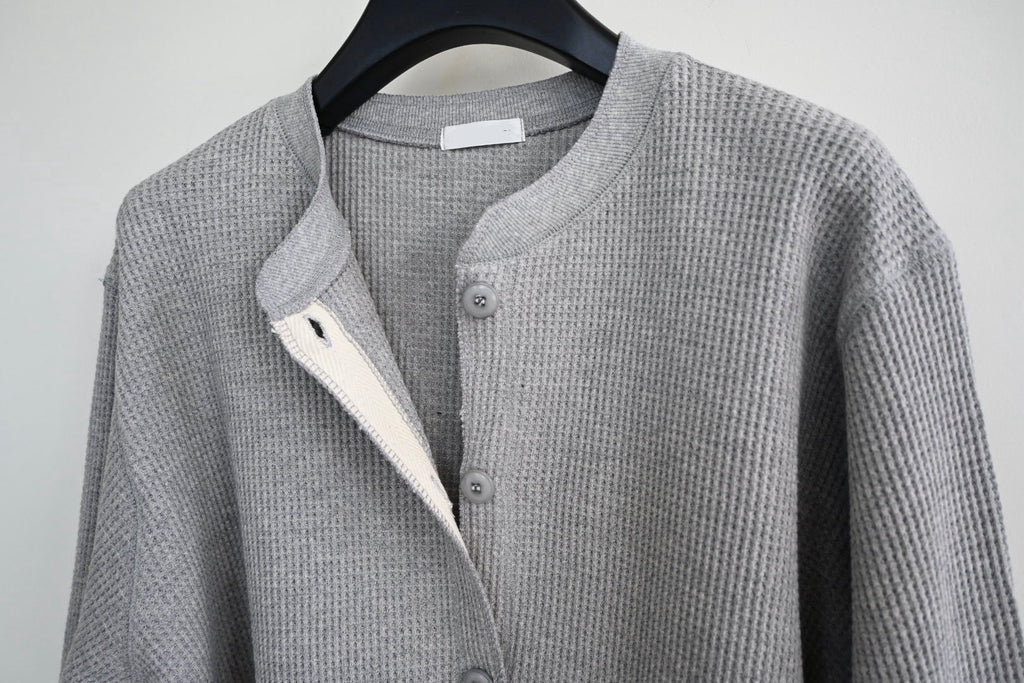 A cozy button-up cardigan crafted from textured waffle fabric for a naturally soft and casual feel. Designed with a relaxed silhouette and ribbed cuffs and hem, it offers a comfortable fit that’s perfect for everyday wear. The subtle texture adds dimension to simple outfits, making it easy to layer over a basic tee or wear on its own as a lightweight top. A versatile essential that transitions effortlessly through the seasons.