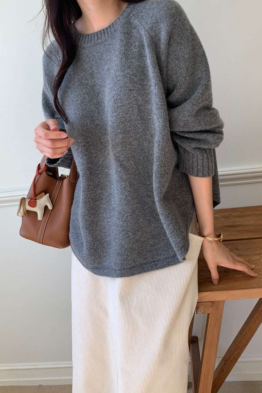 The A-line Flare Sweater features a beautifully draped A-line silhouette that creates a soft, feminine shape while maintaining a relaxed, cozy feel. Made from a warm and dense wool blend, it offers both structure and comfort — perfect as a standalone piece in fall or as a layering knit through winter. The slightly flared hem moves gracefully with every step, adding subtle volume and elegance. Designed with ribbed cuffs and a classic round neckline, it pairs effortlessly with skirts or trousers for a timeless, refined look.