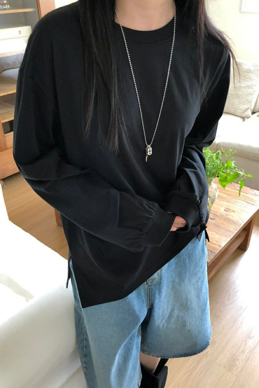 An oversized everyday tee designed with a relaxed silhouette for ultimate comfort. Made from soft cotton, it features side slits that add a touch of ease and movement to the fit. Perfect for layering or wearing on its own, this versatile piece works effortlessly with jeans, skirts, or lounge pants for a casual yet put-together look.