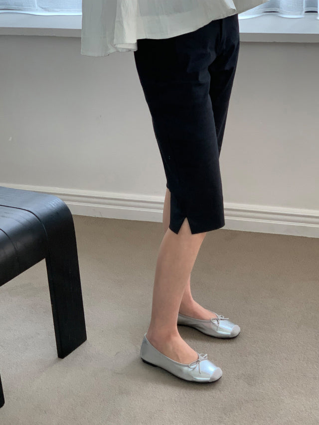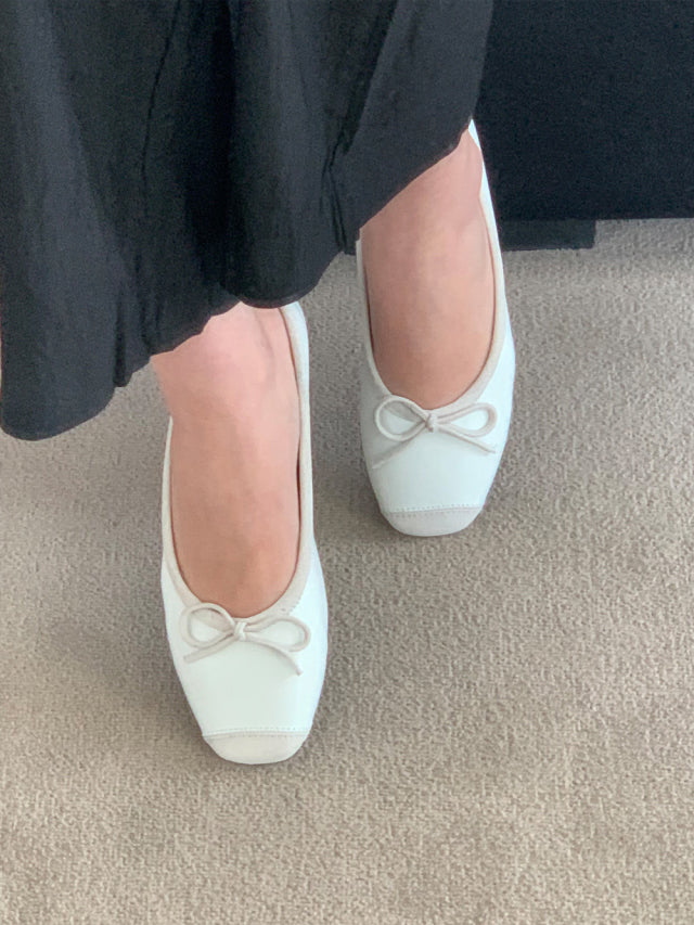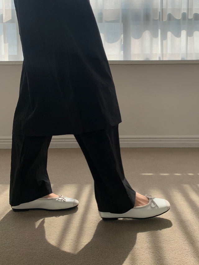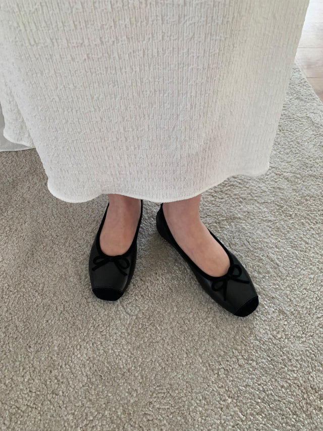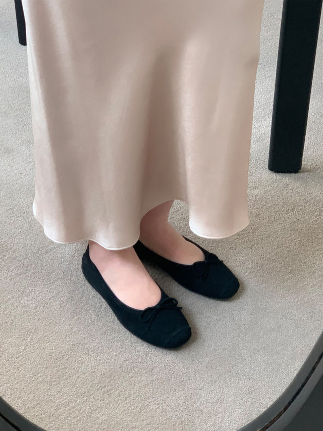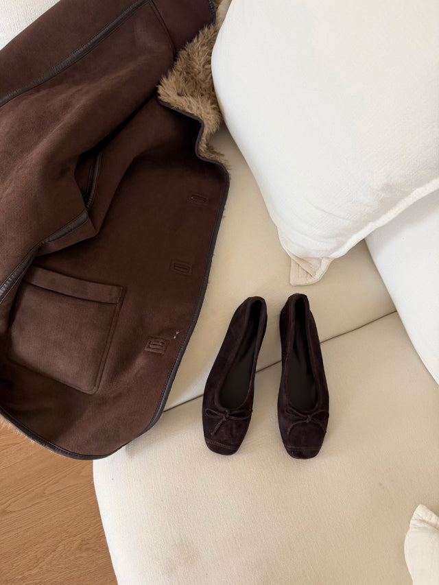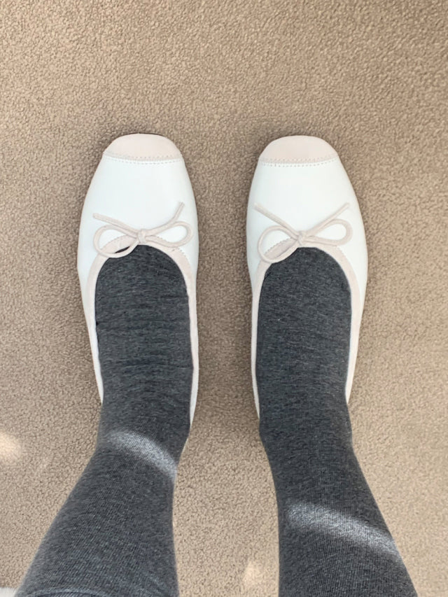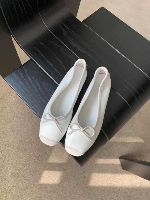 A modern take on the classic ballerina, the this flat features a rounded square toe and a subtle cap detail for added dimension. Finished with a petite bow and low-cut vamp, it’s the kind of everyday flat that feels both polished and effortless. Available in a range of versatile shades—from creamy ivory and cool silver to deep chocolate and black suede—this pair blends comfort with timeless charm.