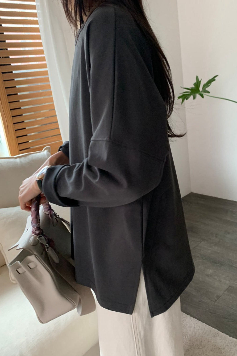 The 26 Loose Tee is a clean essential designed for everyday versatility. Cut in a soft, breathable cotton blend, it features a relaxed silhouette with dropped shoulders and a straight hem for easy layering or effortless wear on its own. The neckline is finished with subtle ribbing for structure, while the side slits offer a hint of movement. It’s the kind of piece you’ll reach for on repeat, whether dressed up with tailored bottoms or kept casual.