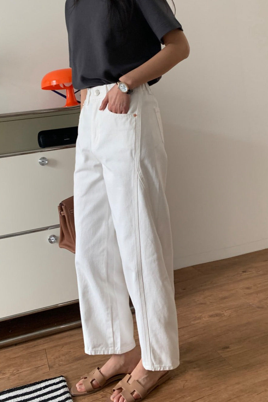The unique side panel detailing adds a soft sculptural edge, making them more than just your basic white denim. Ideal for relaxed, everyday looks with an elevated twist.