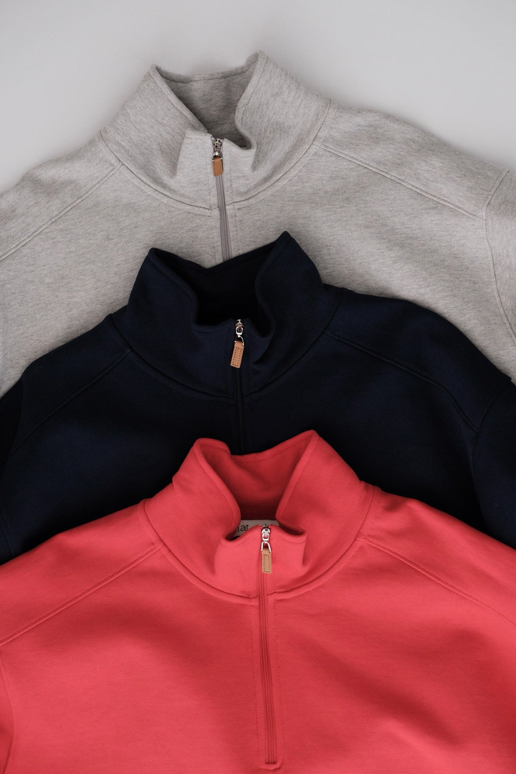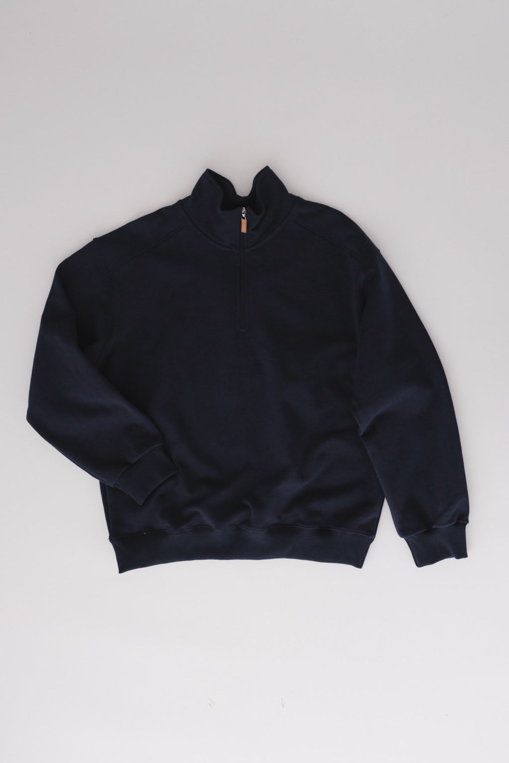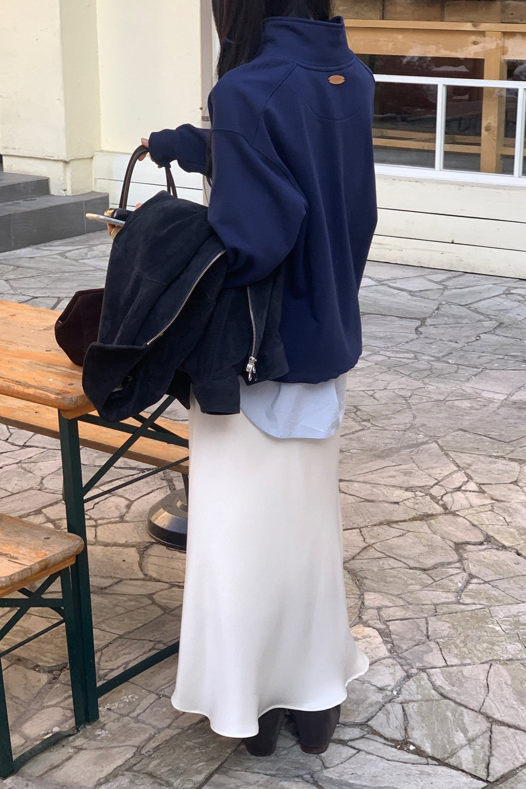 Designed with a versatile half-zip closure, it can be styled as a high-neck or folded into a relaxed collar for different moods. A loose, shoulder-enhancing oversized silhouette provides comfortable coverage, while the clean, balanced length ensures a neat and effortless outfit finish.