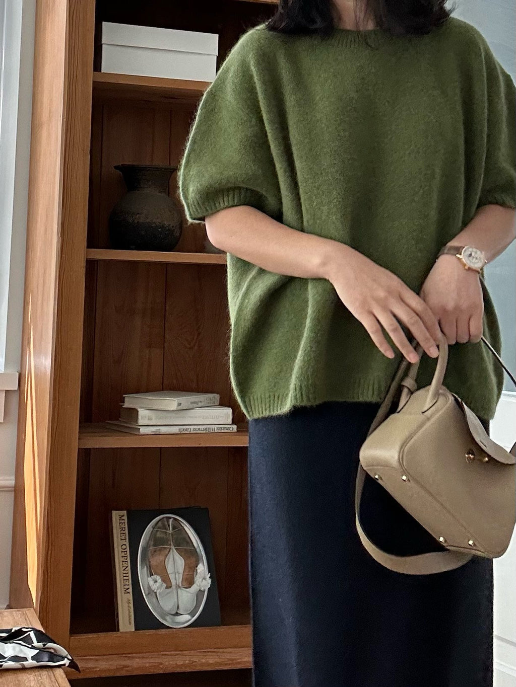 The Cozy Cashmere Half Sleeve Knit features a relaxed, boxy fit crafted from a luxuriously soft cashmere blend. Its thick yet lightweight texture delivers both warmth and comfort, making it perfect for transitional layering or standalone wear. The slightly dropped shoulder and gentle sleeve shape create a soft, feminine silhouette that drapes effortlessly. This versatile piece pairs beautifully with trousers, skirts, or under jackets, elevating any look with understated elegance and cozy refinement.