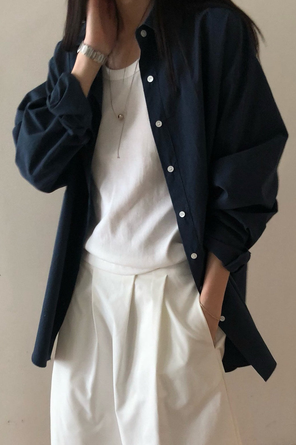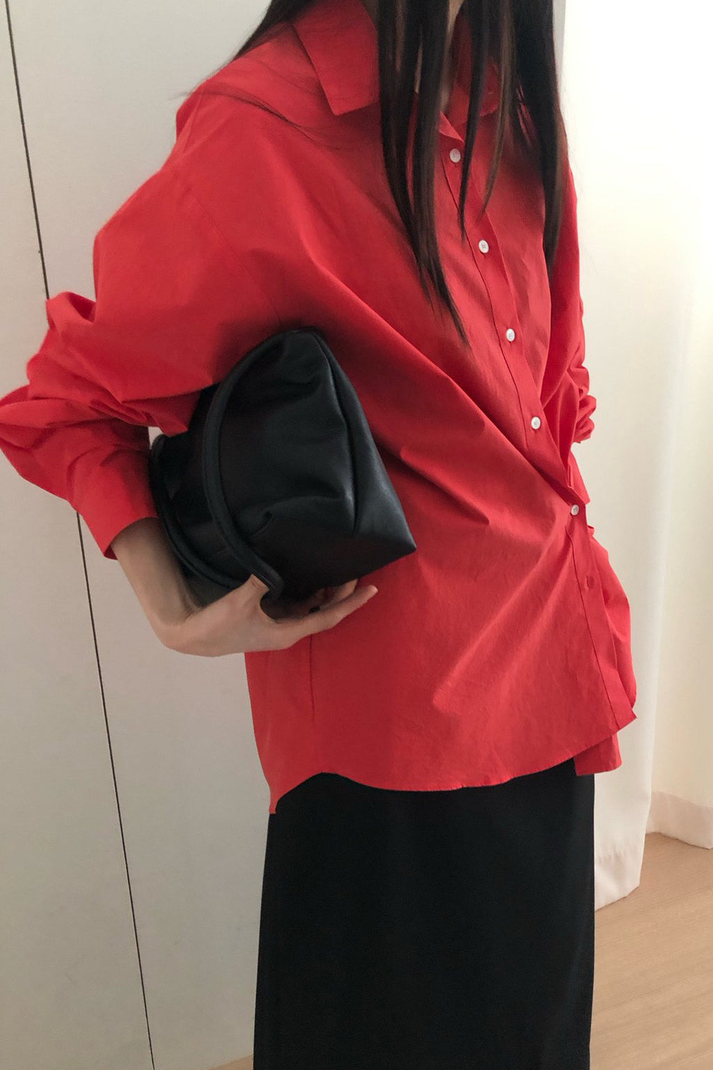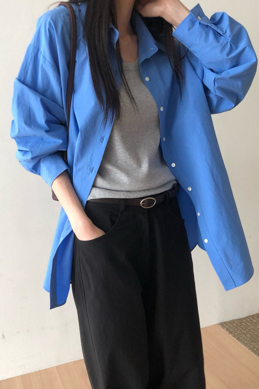 Made from crisp yet lightweight fabric, it drapes naturally and can be styled in multiple ways — worn loosely, slightly wrapped, or layered over a tee or tank. A versatile wardrobe staple that pairs beautifully with trousers, denim, or skirts for everyday minimal styling.