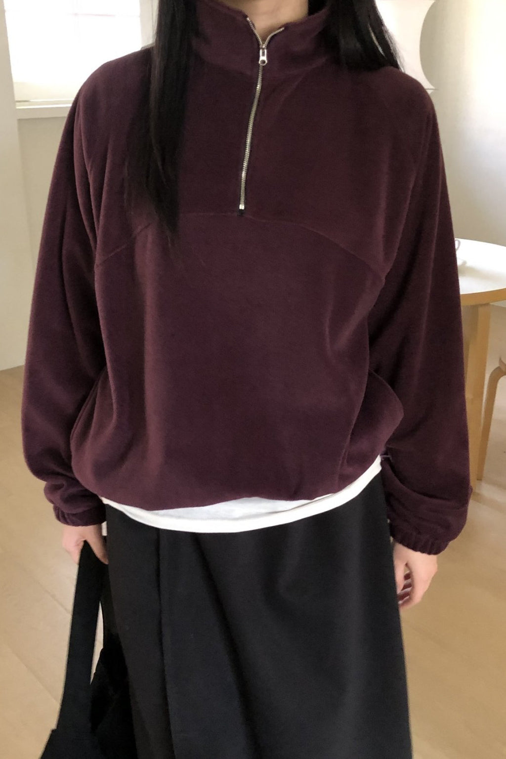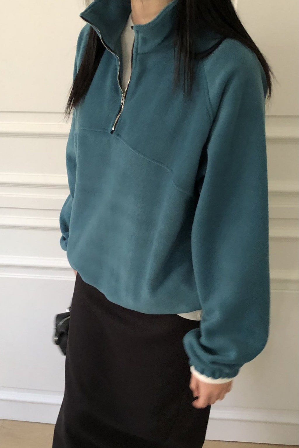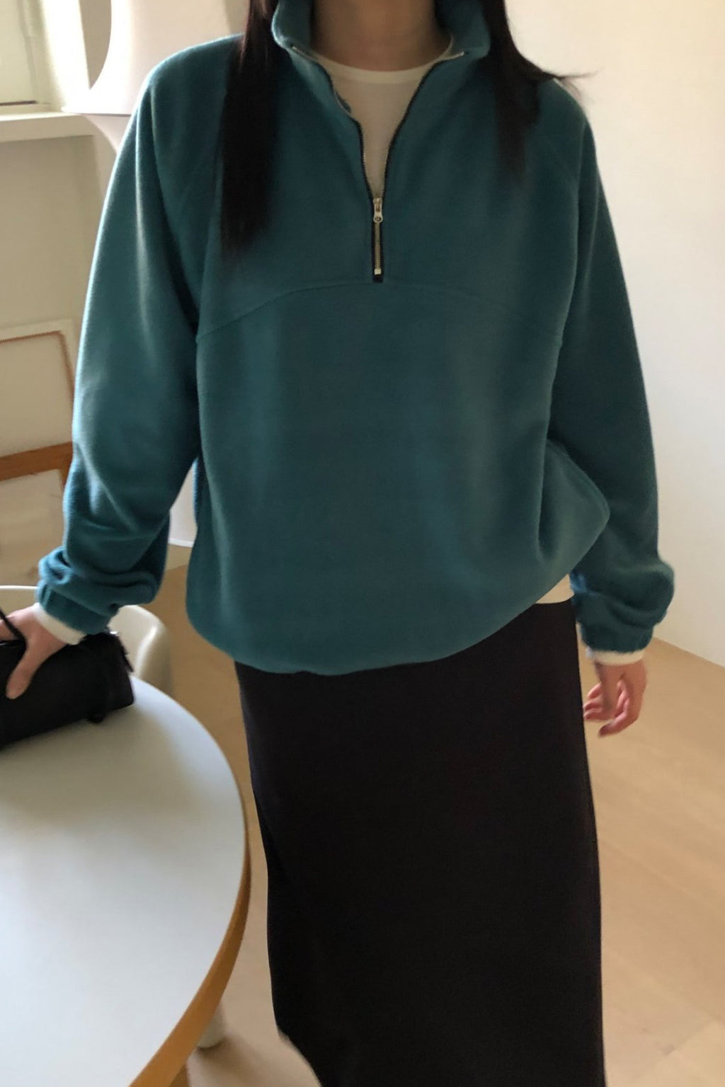 Soft, easy, and slightly retro — the Fleece Half Zip-up is made for low-effort layering with max comfort. The plush fleece fabric feels warm without the weight, while the relaxed cut and dropped shoulders give it that cozy, borrowed-from-the-boys vibe. A high collar with a clean metal zip lets you play with shape, from slouchy and open to snug and zipped. Wear it over long tees or under a coat — either way, it's an everyday staple you’ll reach for again and again.