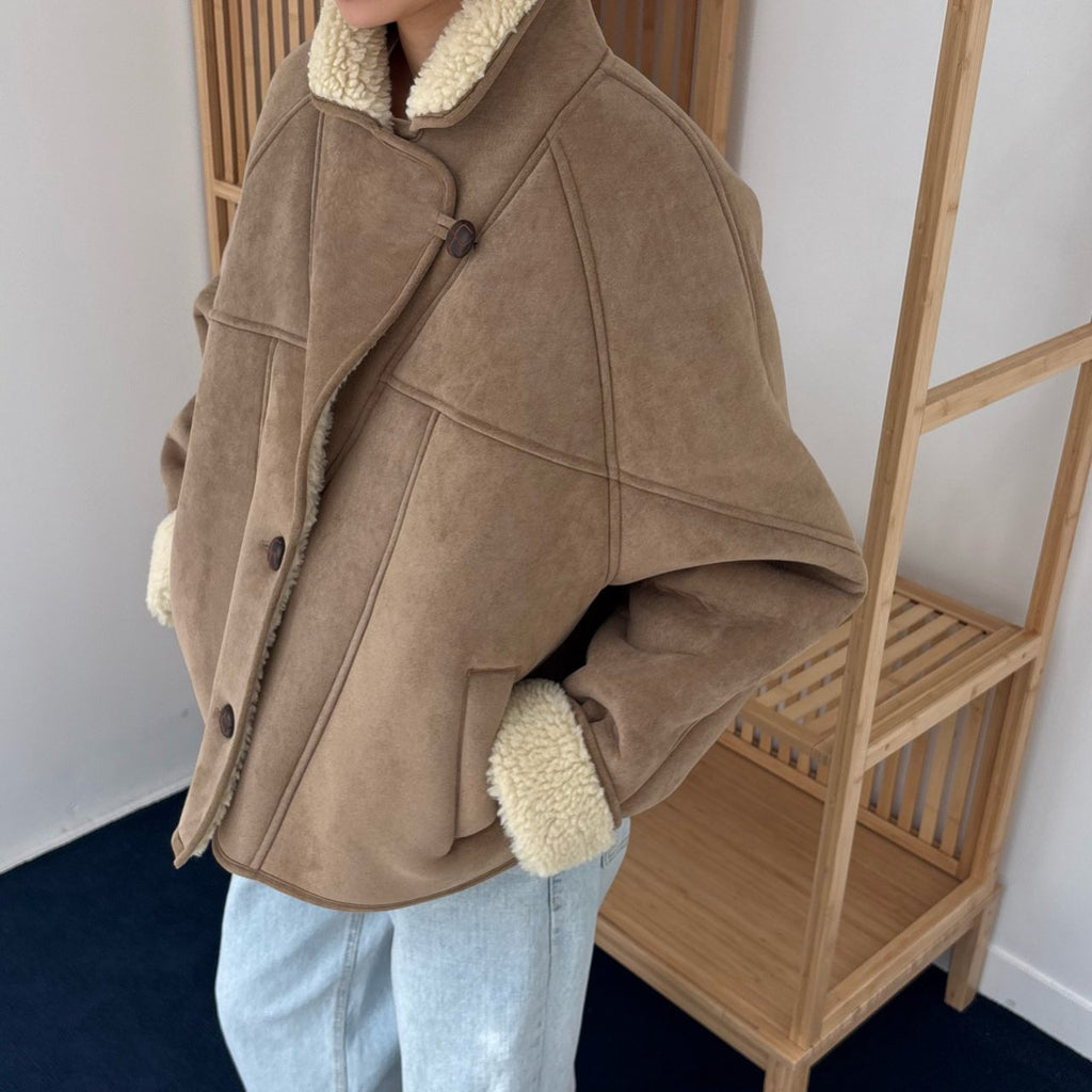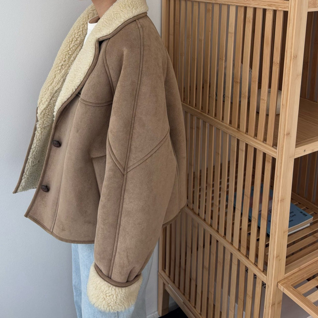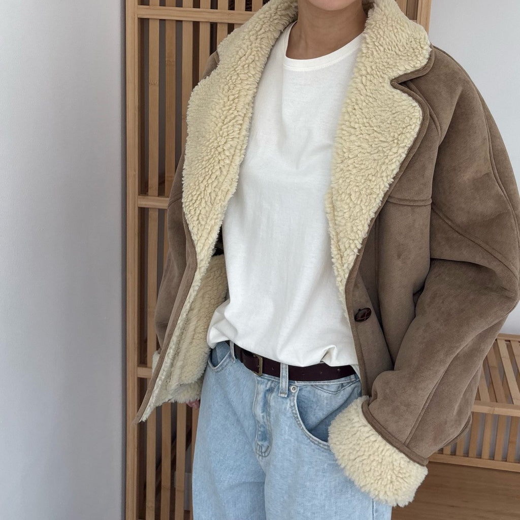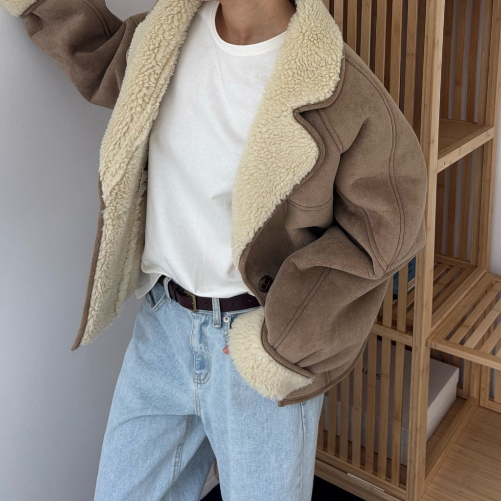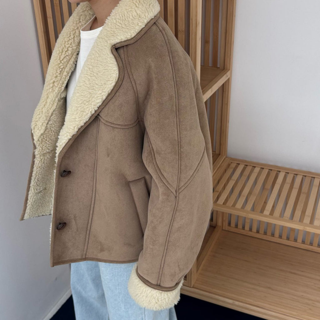 The Howell Mustang is a cozy and structured faux shearling jacket designed to bring both warmth and modern style to your winter looks. Crafted from a soft suede-like exterior with a plush, sherpa-lined interior, it delivers a luxurious texture and premium insulation. The oversized silhouette, dropped shoulders, and wide shearling collar create a relaxed yet refined shape that pairs beautifully with denim or trousers. Effortlessly chic, this jacket is the perfect balance of comfort and sophistication.