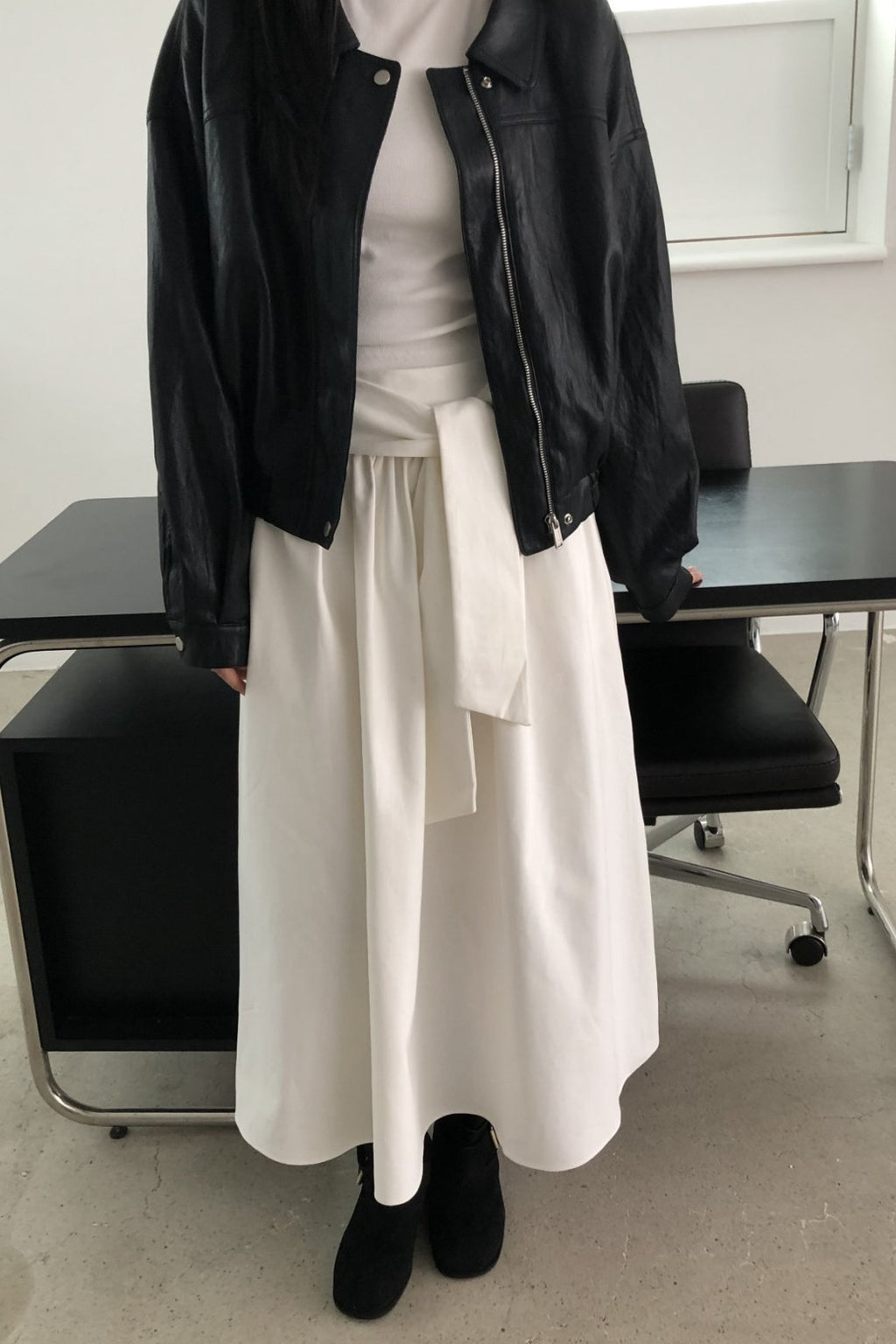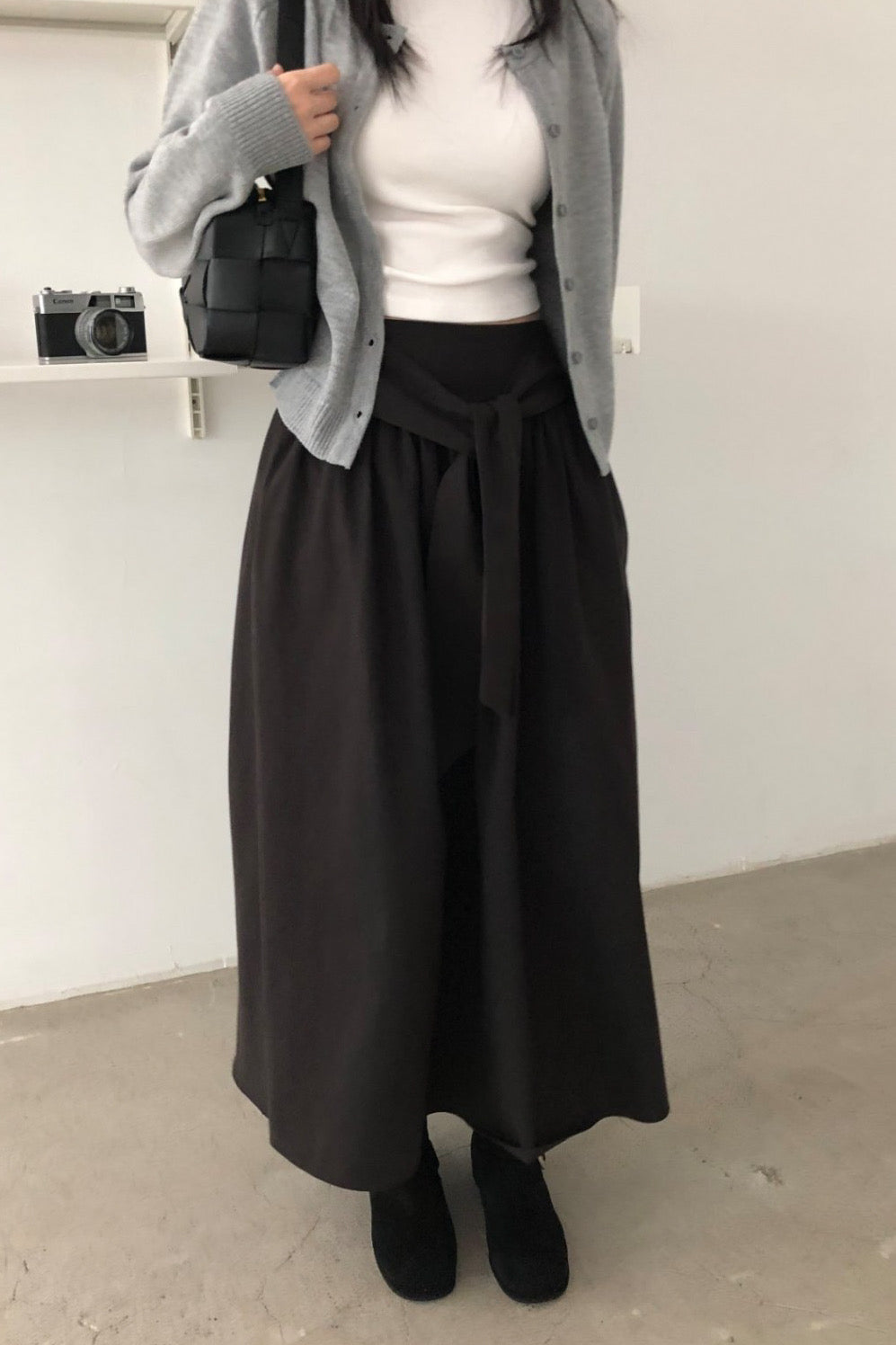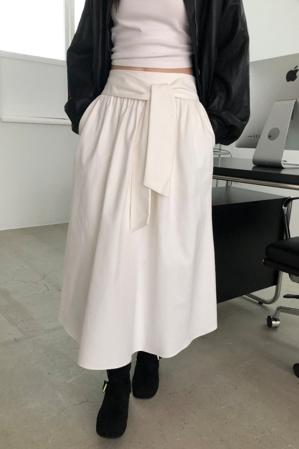 The Waist Tie A-Line Skirt features a graceful A-line silhouette enhanced with a wide waistband and a soft tie detail that cinches the waist beautifully. Designed with a clean back invisible zipper and full lining for comfort and structure, it drapes elegantly with subtle volume and movement. The tie accent adds a gentle focal point, blending modern minimalism with feminine balance. Perfect for pairing with fitted tops, knits, or blouses, this skirt brings quiet sophistication to both casual and dressed-up looks.