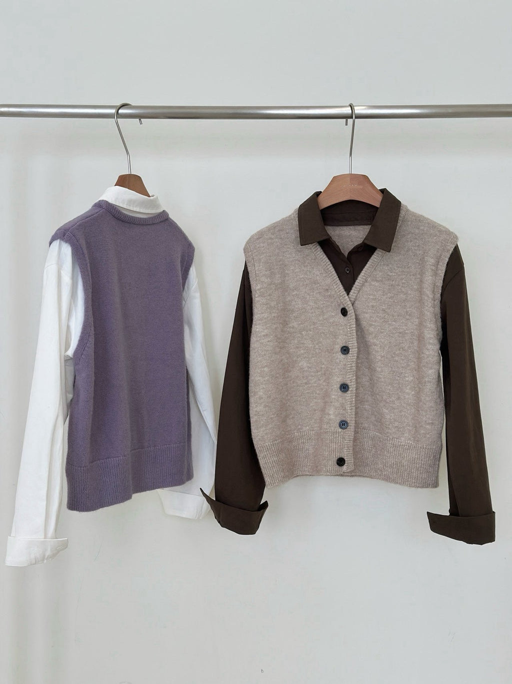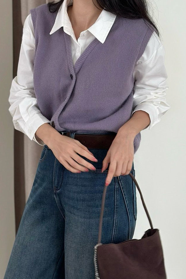 Effortlessly blending structure and softness, this layered-look piece combines the warmth of a knit vest with the polish of a classic shirt — all in one. It’s designed with a clean single collar and hidden button-down closure, giving off a smart, modern vibe. The fabric is soft and drapey with just enough body to hold its shape, making it perfect worn on its own or layered like a light jacket. With a flattering hip-length cut and easy fit, it pairs seamlessly with high-waisted jeans, trousers, skirts, or dresses. A wardrobe staple you’ll keep reaching for.