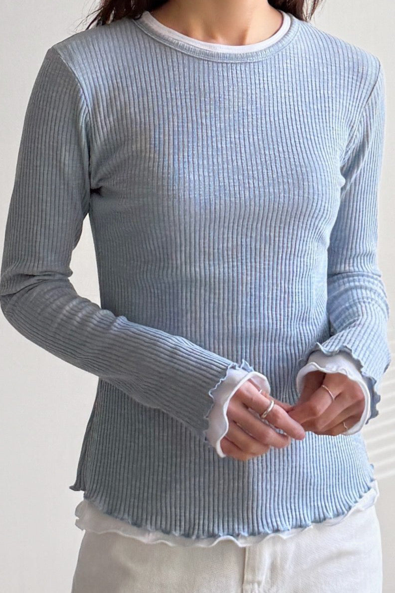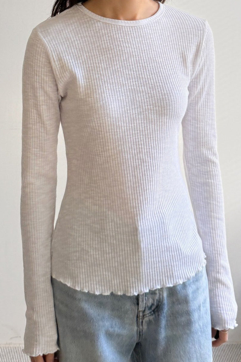 Soft, stretchy, and subtly detailed — the Modal Wave Tee is that everyday essential with just the right amount of charm. The hem and cuffs finish in a natural wave, giving it a feminine, relaxed flow without trying too hard. Made from a cotton-modal blend, it hugs the body with gentle stretch and a cool-touch softness you’ll want to live in. The ribbed texture adds depth, while the lightweight knit makes it perfect for layering or wearing solo.