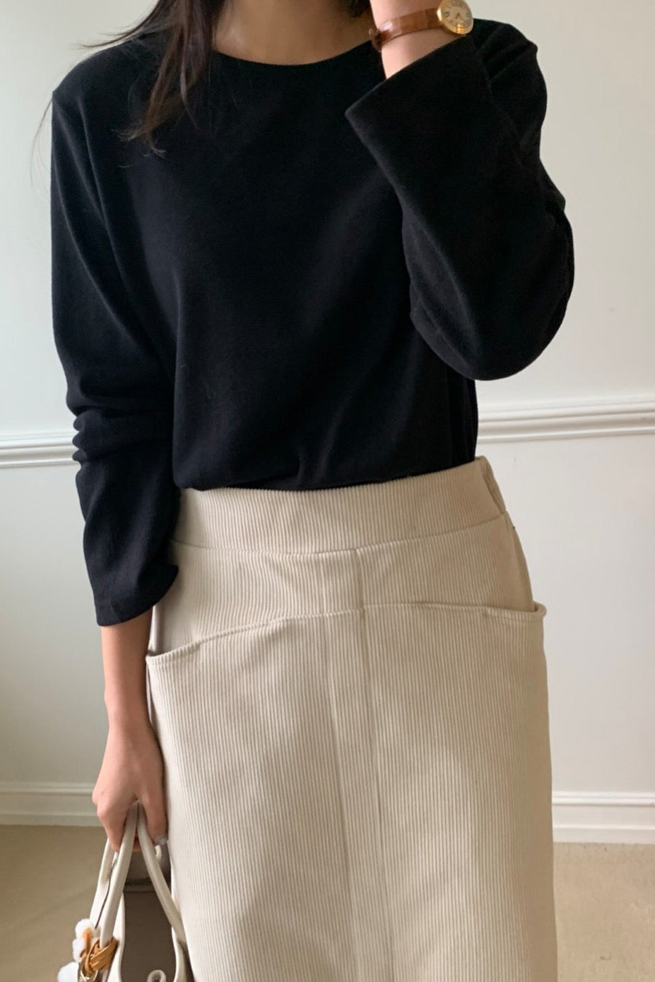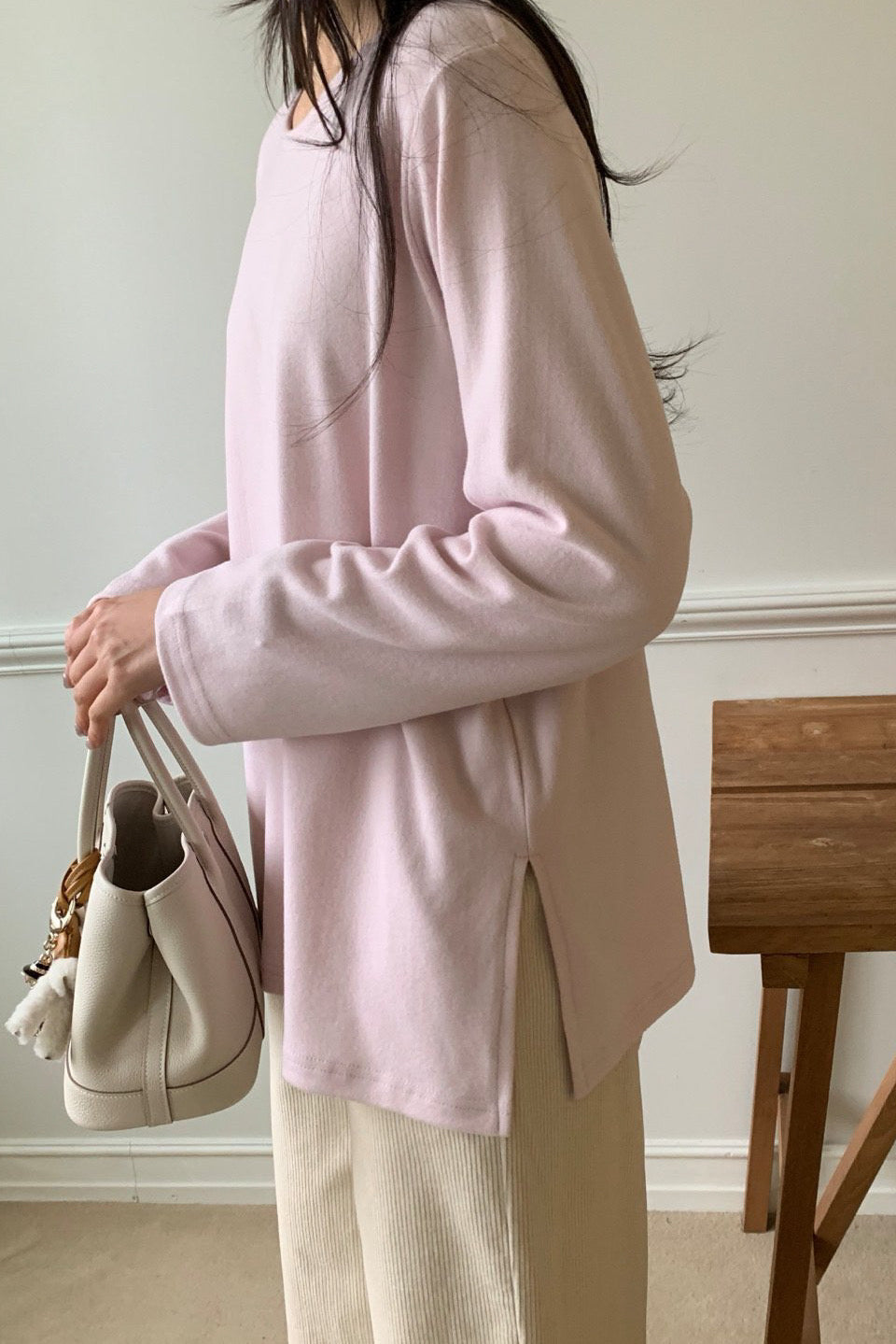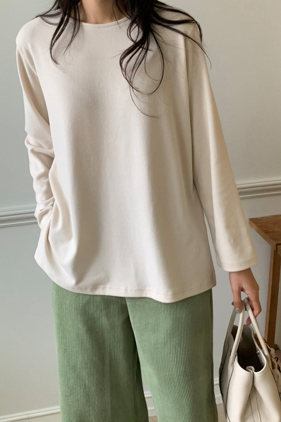 Made from a soft brushed fabric, this tee offers gentle warmth without feeling heavy. It resists wrinkles and drapes smoothly, making it easy to wear and care for. Lightweight yet insulating, it’s a comfortable everyday piece that’s perfect for layering and ideal to wear through early spring.