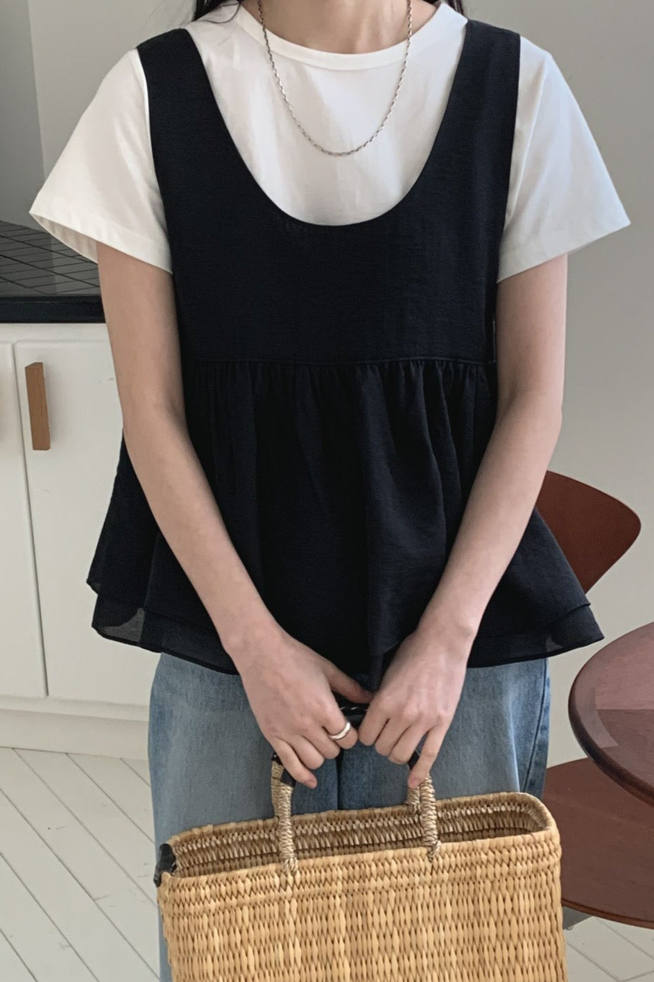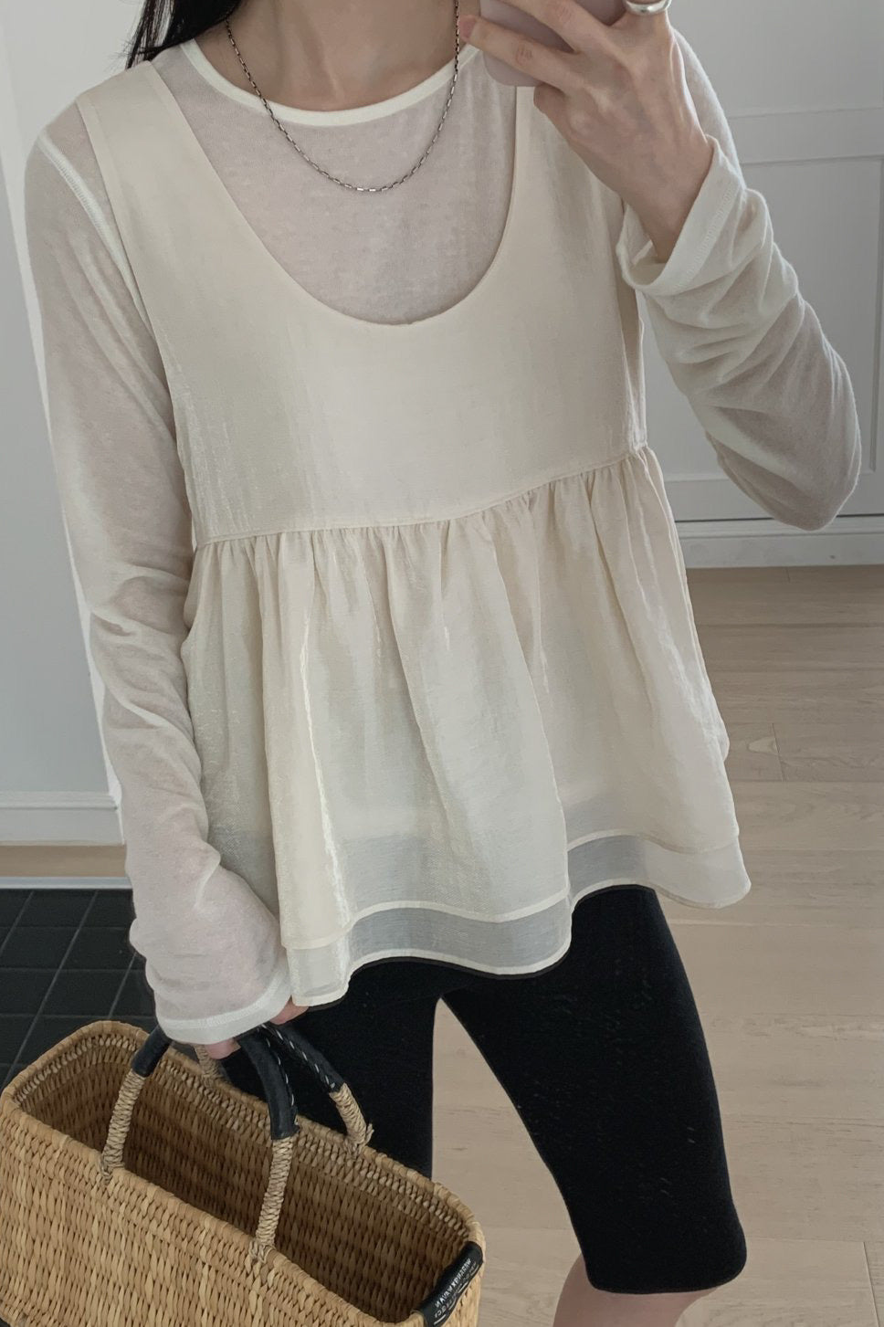 The Lumi Peplum Layer brings soft femininity to casual layering. Designed with a delicate peplum silhouette, it offers gentle volume and graceful draping, perfect for adding dimension to a simple outfit. Its lightweight, semi-sheer fabric makes it ideal for pairing over fitted tops or dresses, creating an effortlessly romantic, layered look. A refined balance of playful and polished.
