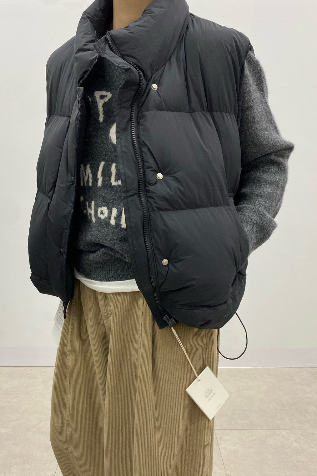 The Sopo Padding Vest is a sleek, quilted outer layer designed with a clean high-neck silhouette for effortless warmth and style. Its lightweight yet plush padding provides excellent insulation without bulk, making it perfect for layering over knits, sweatshirts, or hoodies. The front features both a zipper and snap closure for added wind protection, while the adjustable hem drawstring allows for a customized fit. Available in neutral tones that blend seamlessly with any winter wardrobe.