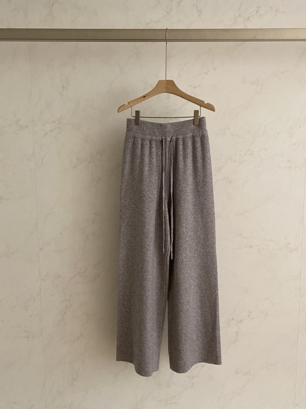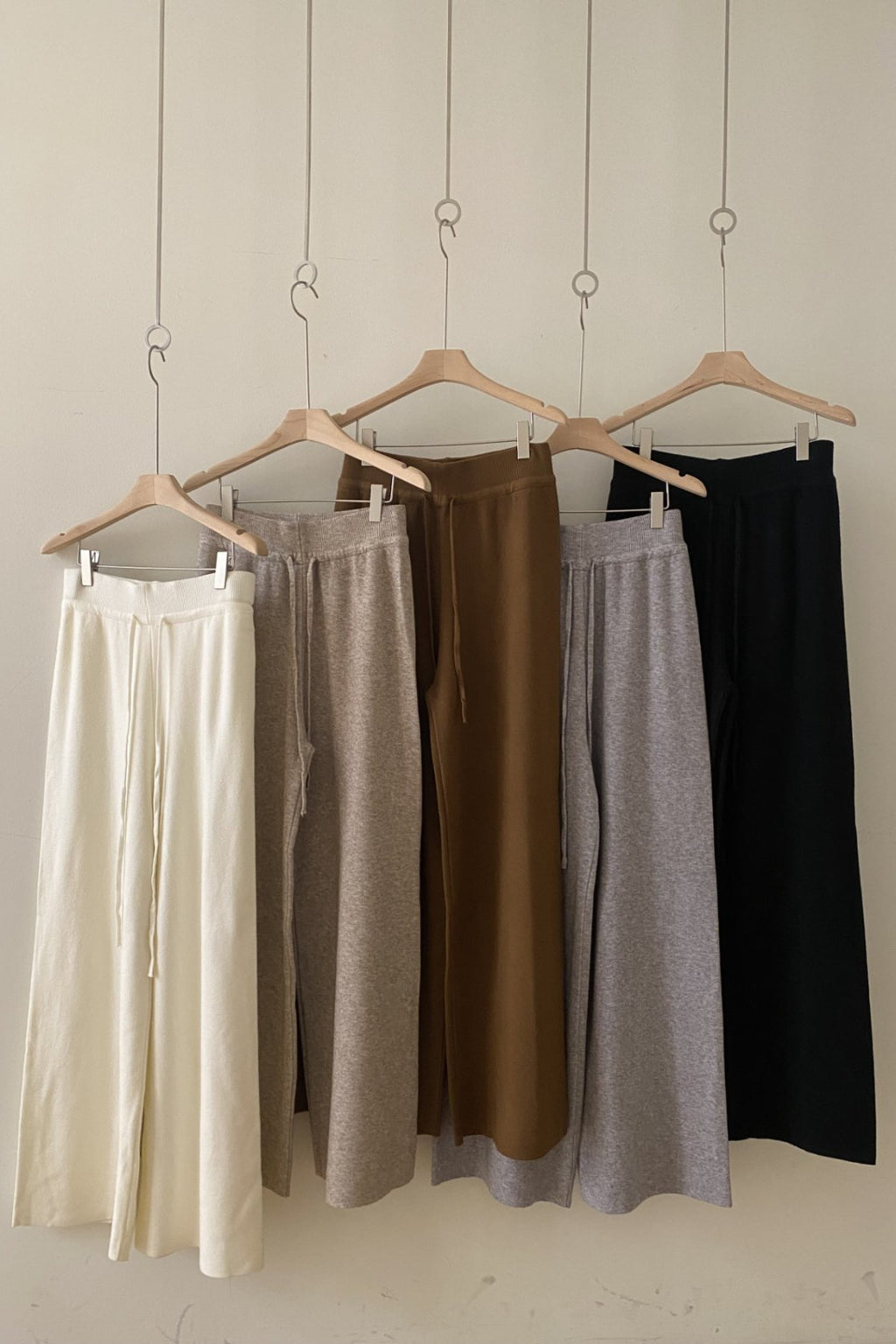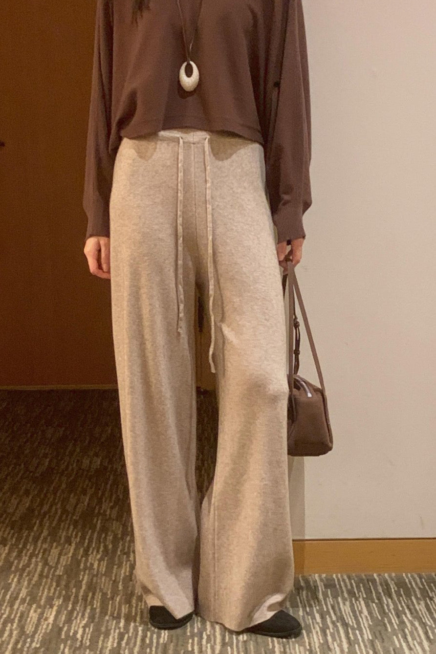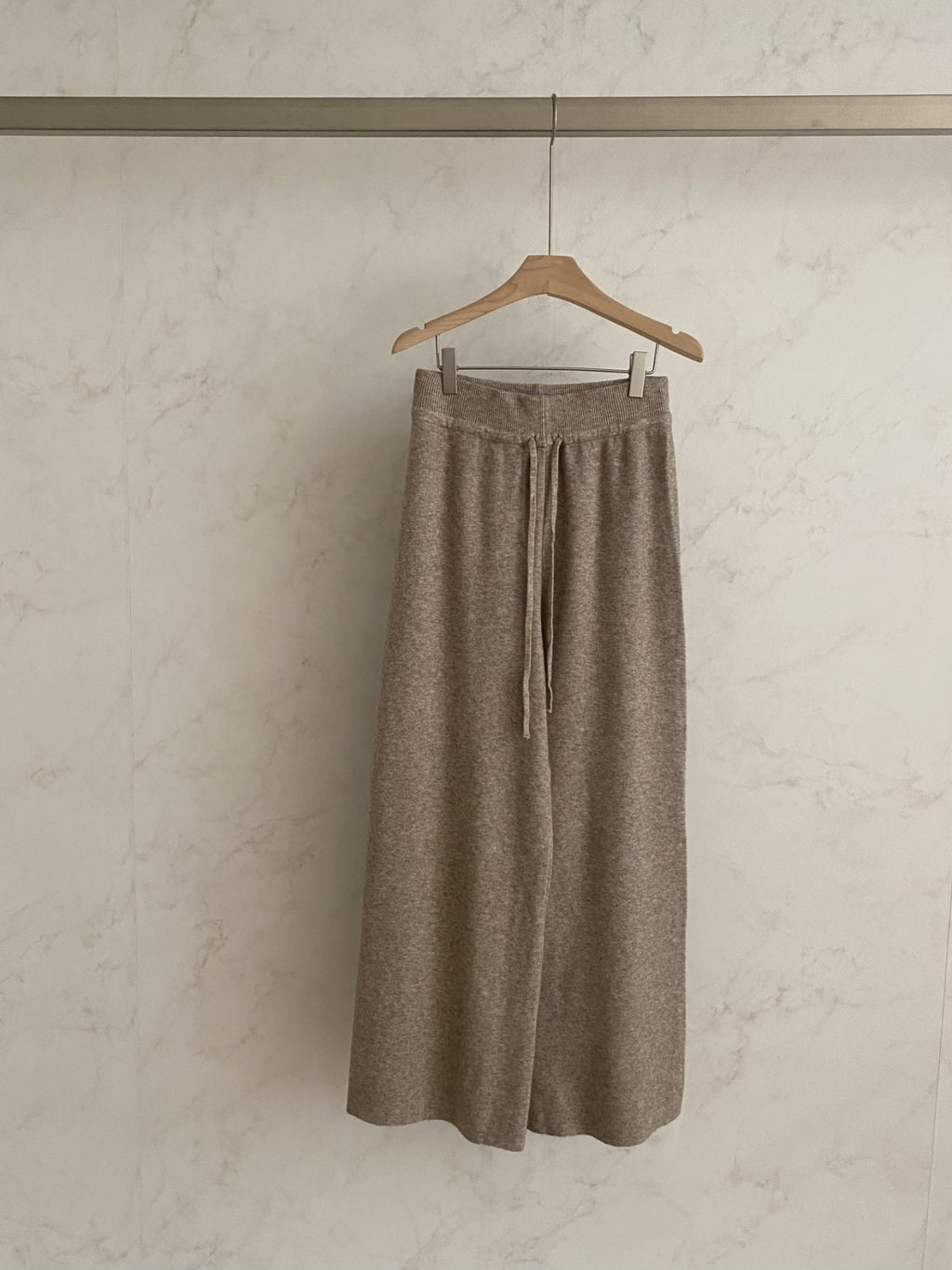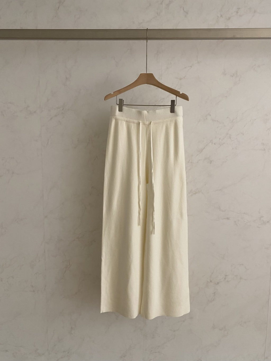Loose-fitting knit pants with a long, straight silhouette for an effortlessly relaxed look. Designed with a soft knit texture and comfortable elastic waistband with drawstring detail, these pants drape naturally and offer ease of movement. Perfect for cozy daily wear while maintaining a clean, minimal style.