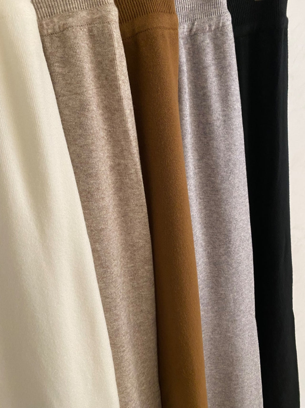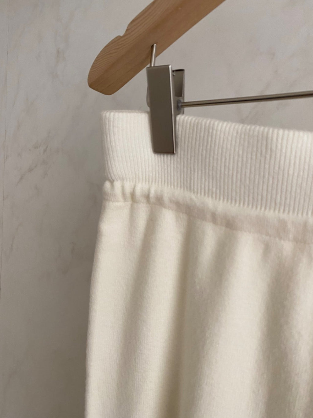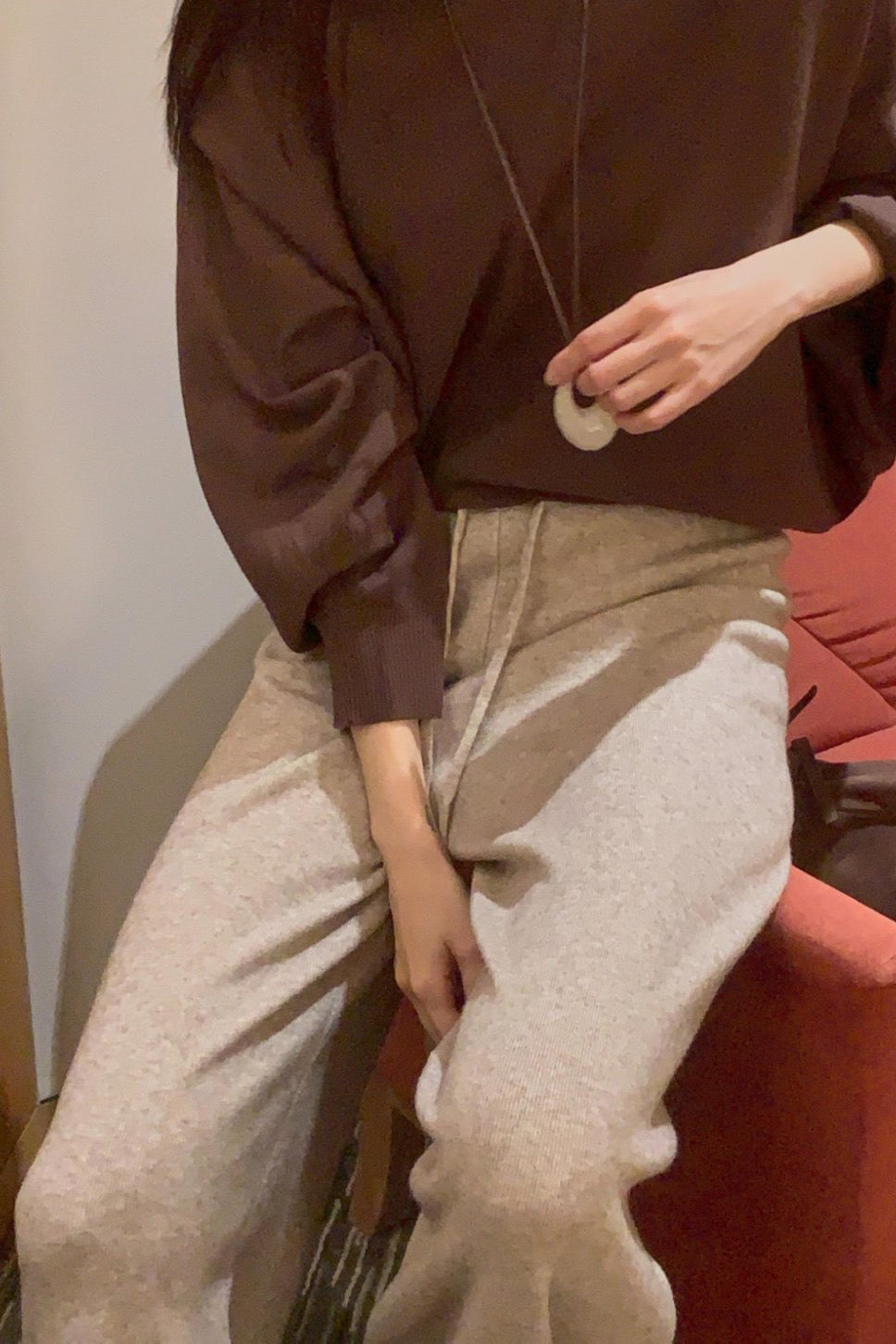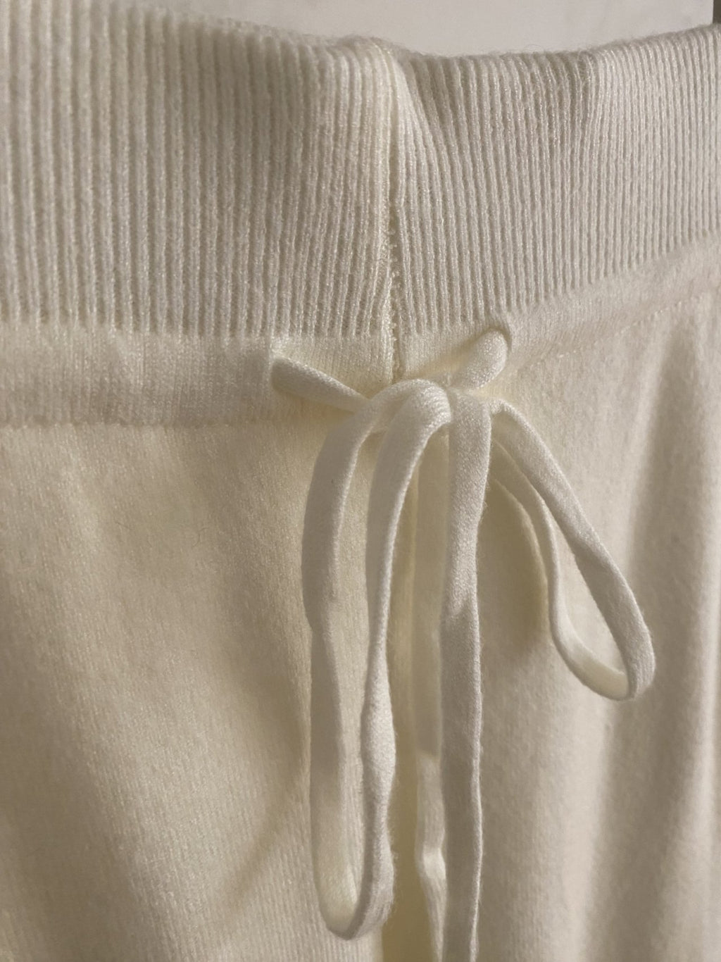 Loose-fitting knit pants with a long, straight silhouette for an effortlessly relaxed look. Designed with a soft knit texture and comfortable elastic waistband with drawstring detail, these pants drape naturally and offer ease of movement. Perfect for cozy daily wear while maintaining a clean, minimal style.